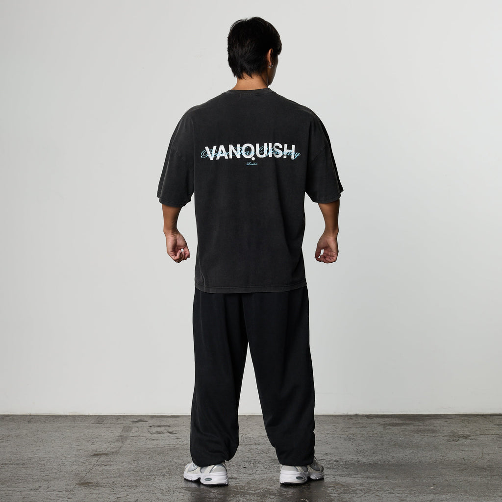 VANQUISH FITNESS Hibiscusモデル ブラック ボクシーオーバーサイズTシャツ
