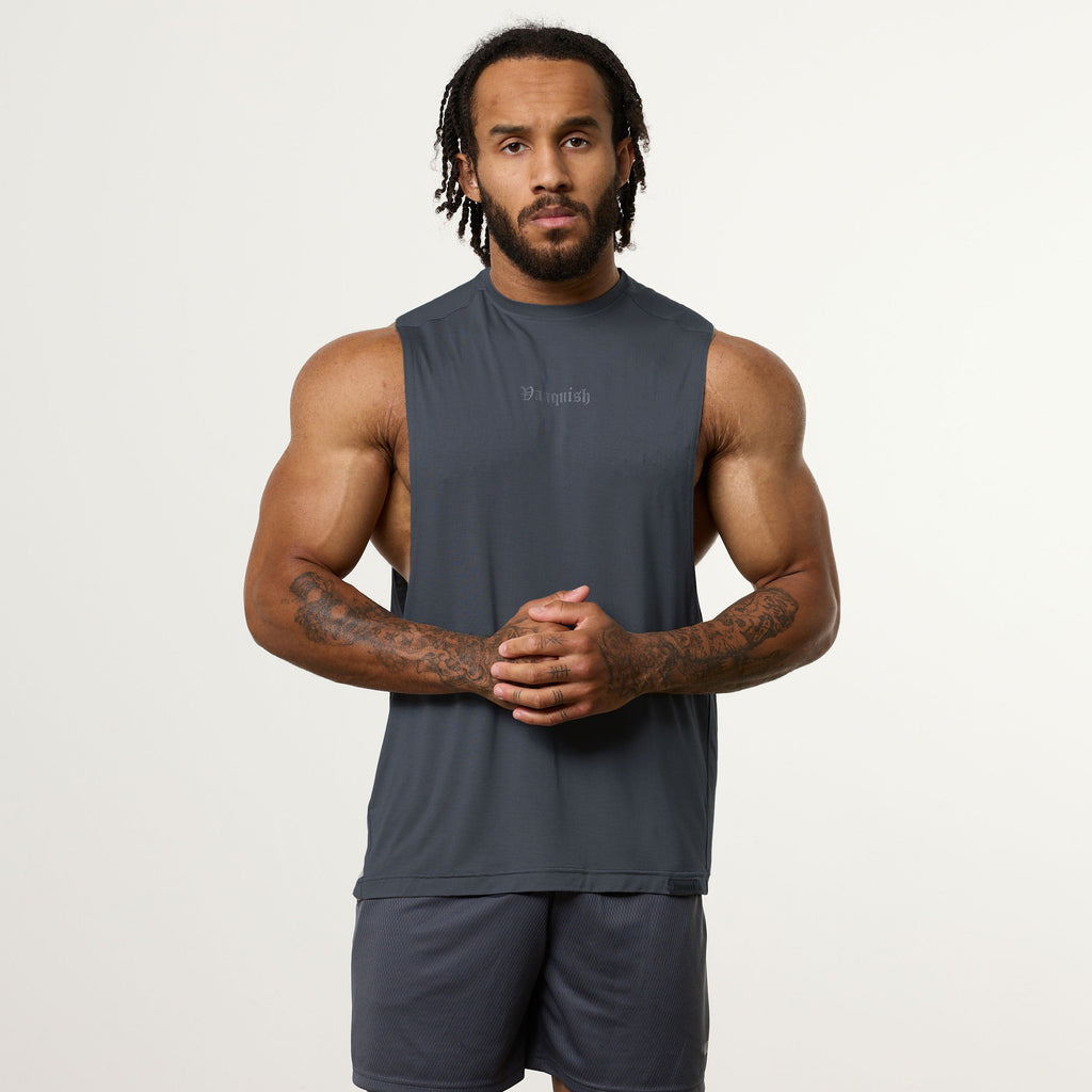 VANQUISH FITNESS Ultra Softモデル デニム ブルー オーバーサイズ ノースリーブ