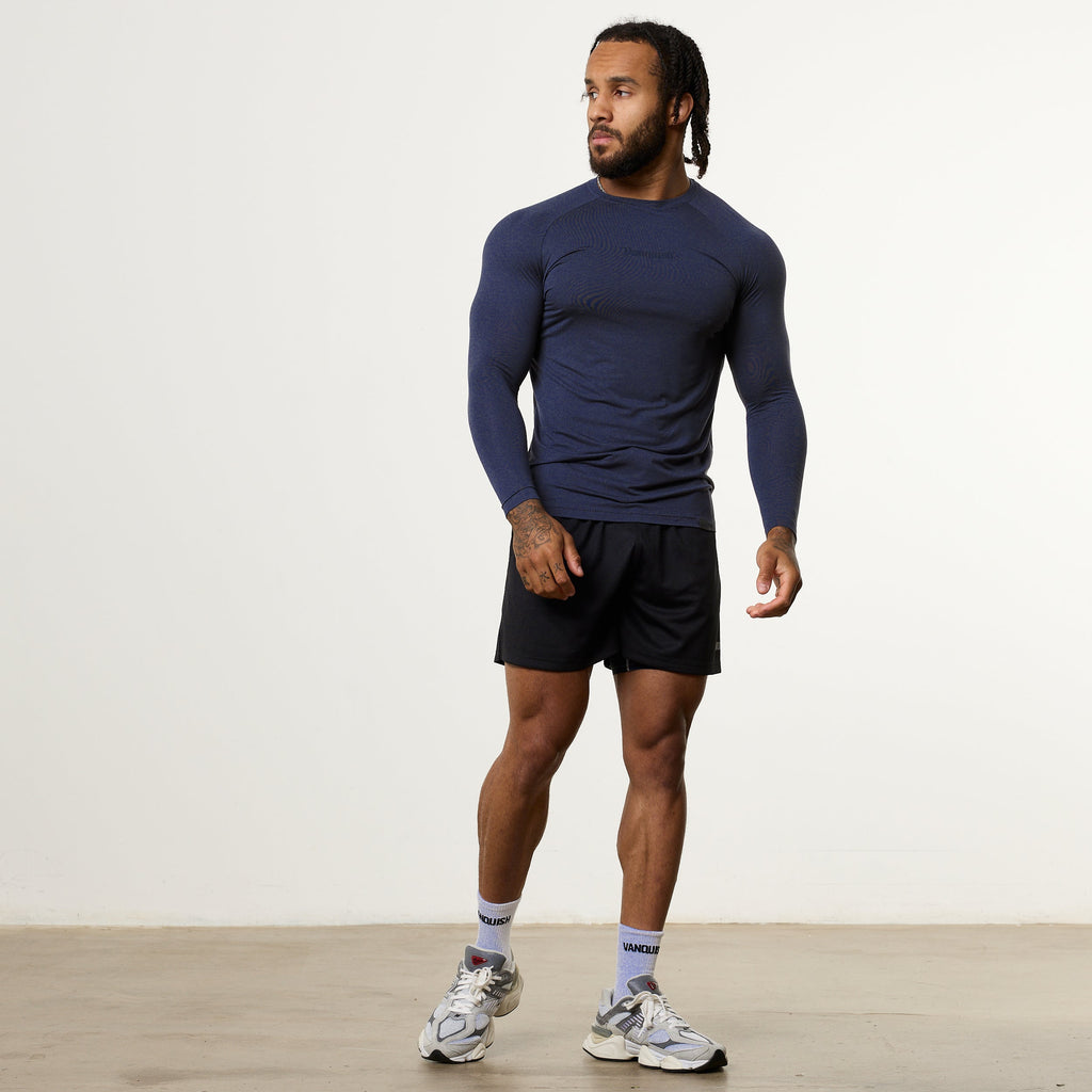 VANQUISH FITNESS Ultra Softモデル ネイビーブルー スリムフィットロングTシャツ