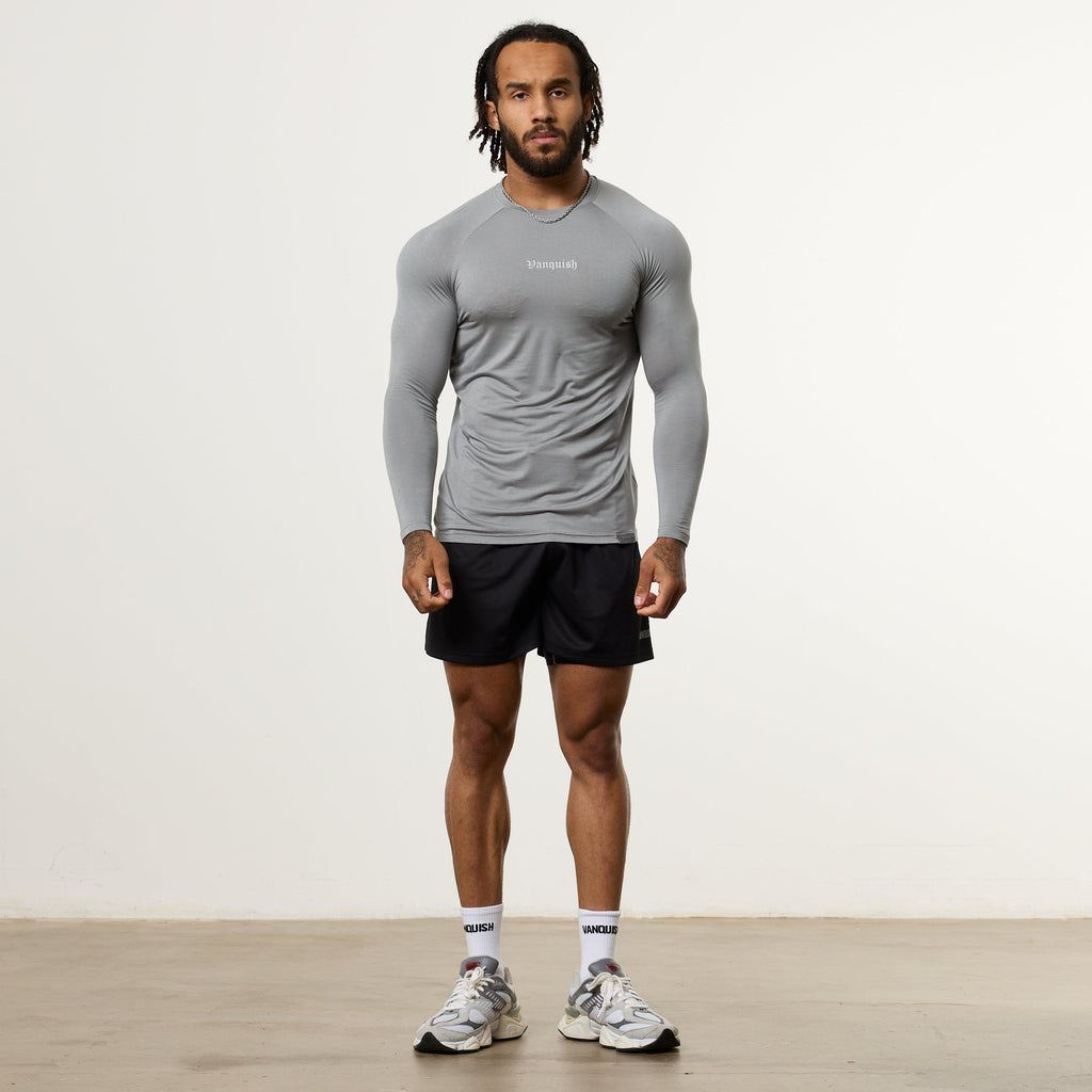 VANQUISH FITNESS Ultra Softモデル スティールグレー 長袖 スリムフィットTシャツ