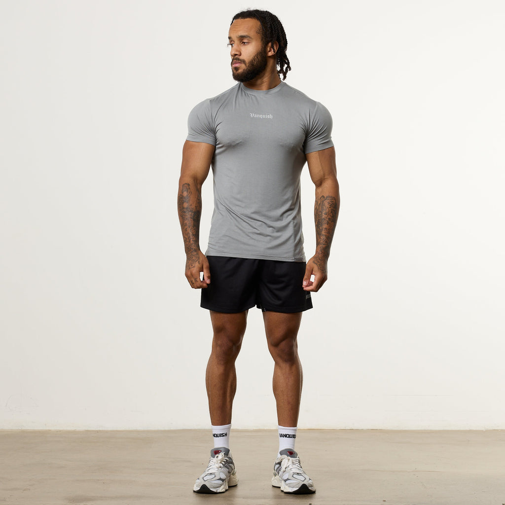 VANQUISH FITNESS Ultra Softモデル スティールグレー スリムフィット Tシャツ