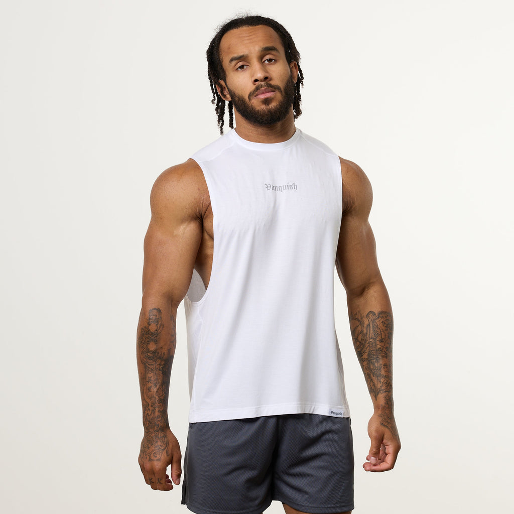 VANQUISH FITNESS Ultra Softモデル ホワイト オーバーサイズ ノースリーブ
